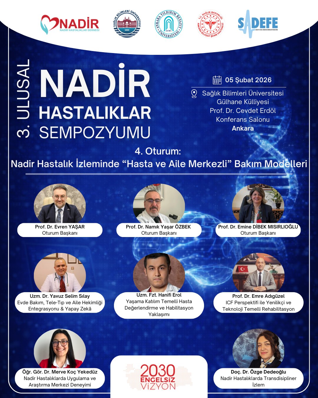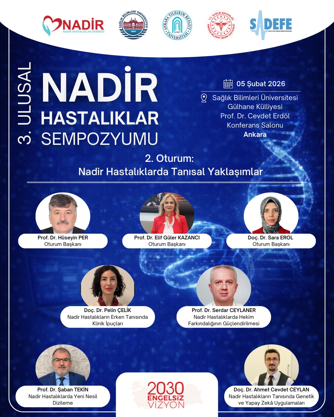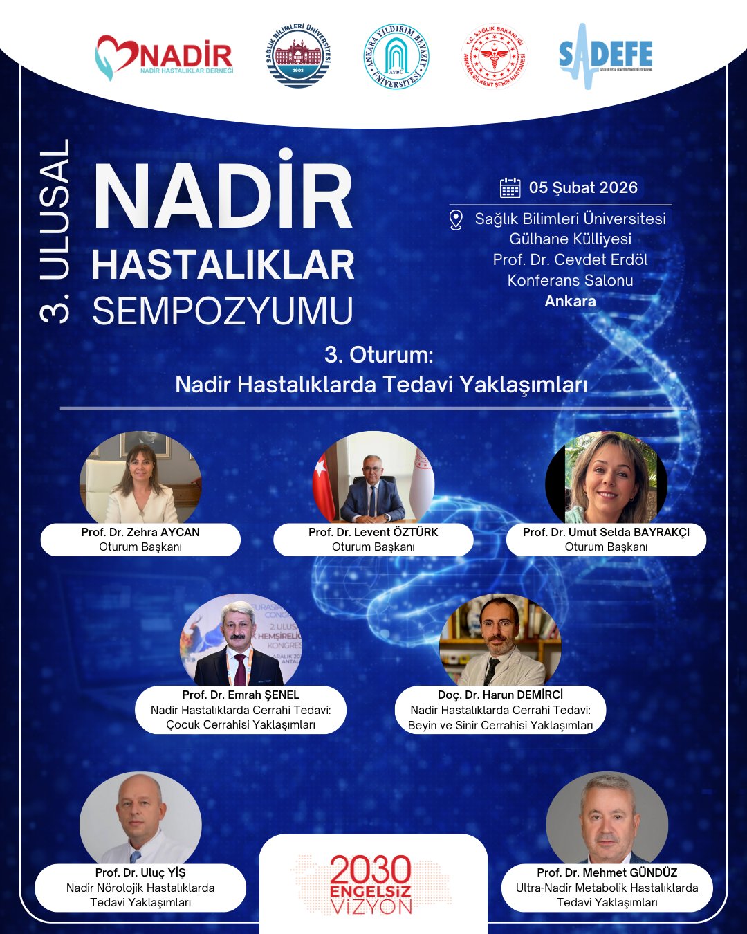 Bu yıl üçüncüsünü düzenleyeceğimiz Nadir Hastalıklar Sempozyumu’na sizleri davet etmekten büyük bir mutluluk ve heyecan duyuyoruz. Sempozyumumuz, 5 Şubat 2026 tarihinde Ankara’da, Sağlık Bilimleri Üniversitesi Gülhane Kampüsü Prof. Dr. Cevdet Erdöl Konferans Salonu’nda gerçekleşecektir.